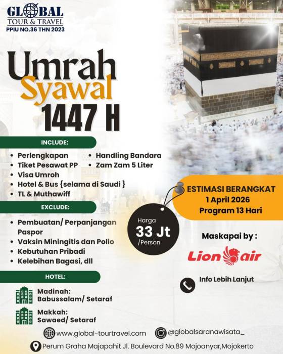 Promo Umroh Syawal 1447 H / 2026 13 hari